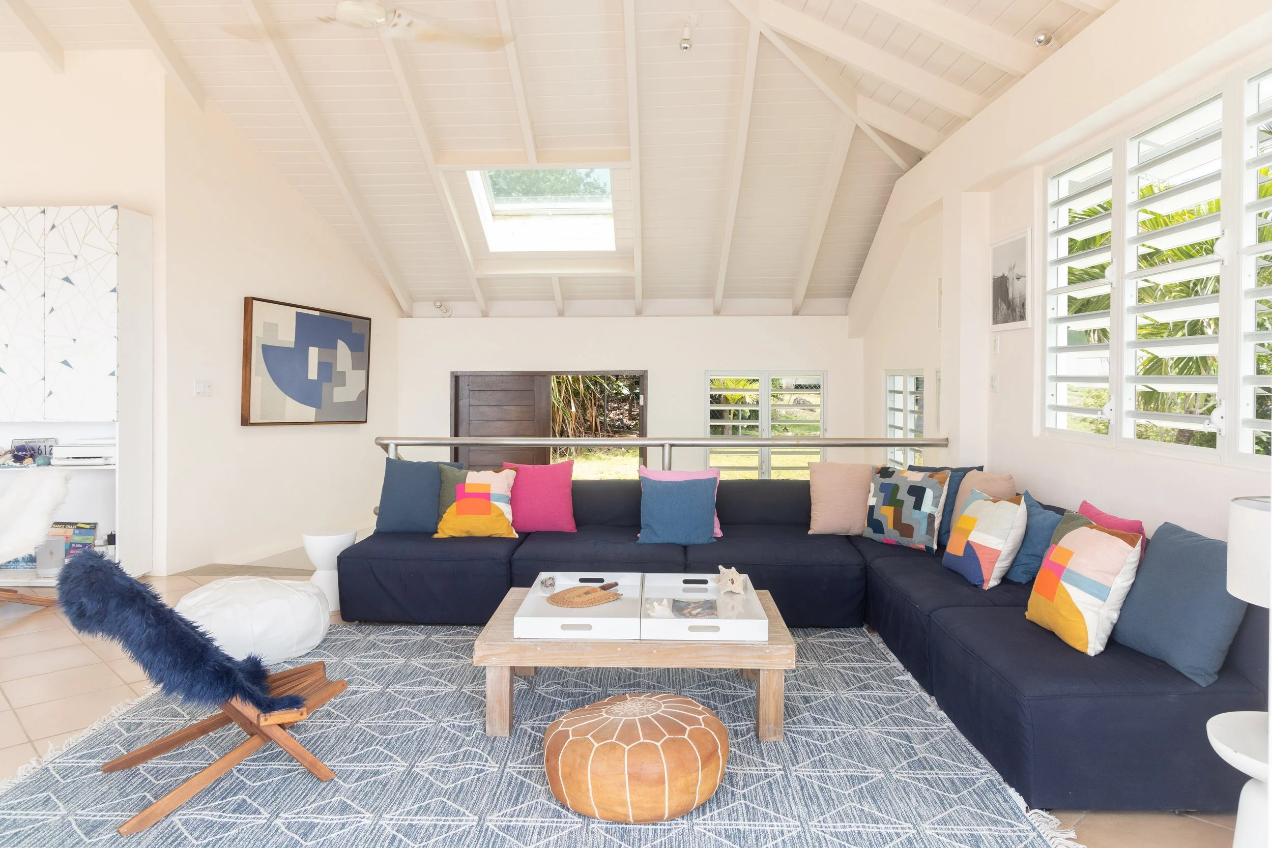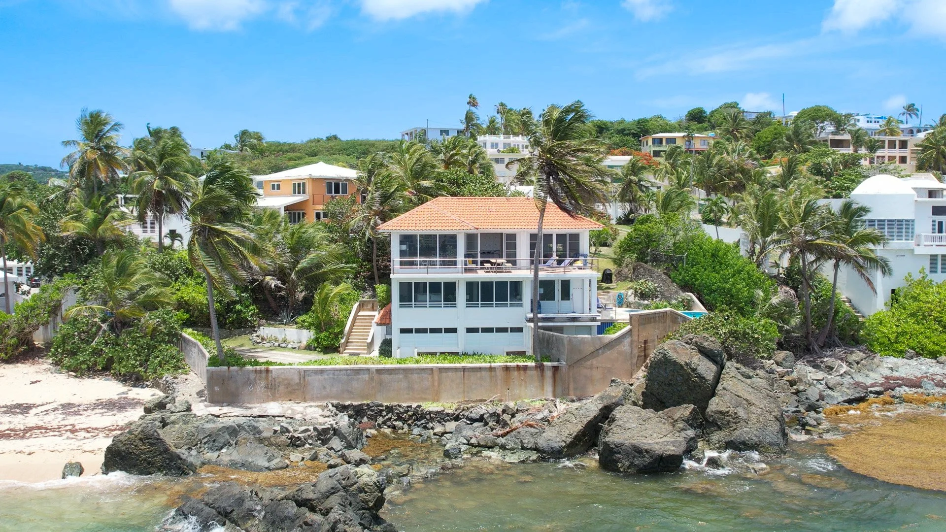 Las Piedras is a rare oceanfront property offering unmatched views and a remarkable connection to its surroundings. Set just above the clear waters of Vieques’ north shore, the home captures a full 180-degree view of the Caribbean—stretching from the coral-lined shallows below to the distant outlines of Culebra, St. Thomas, and St. John on the horizon. To the west, the mountains of mainland Puerto Rico rise against the sky, anchoring the landscape in every direction.