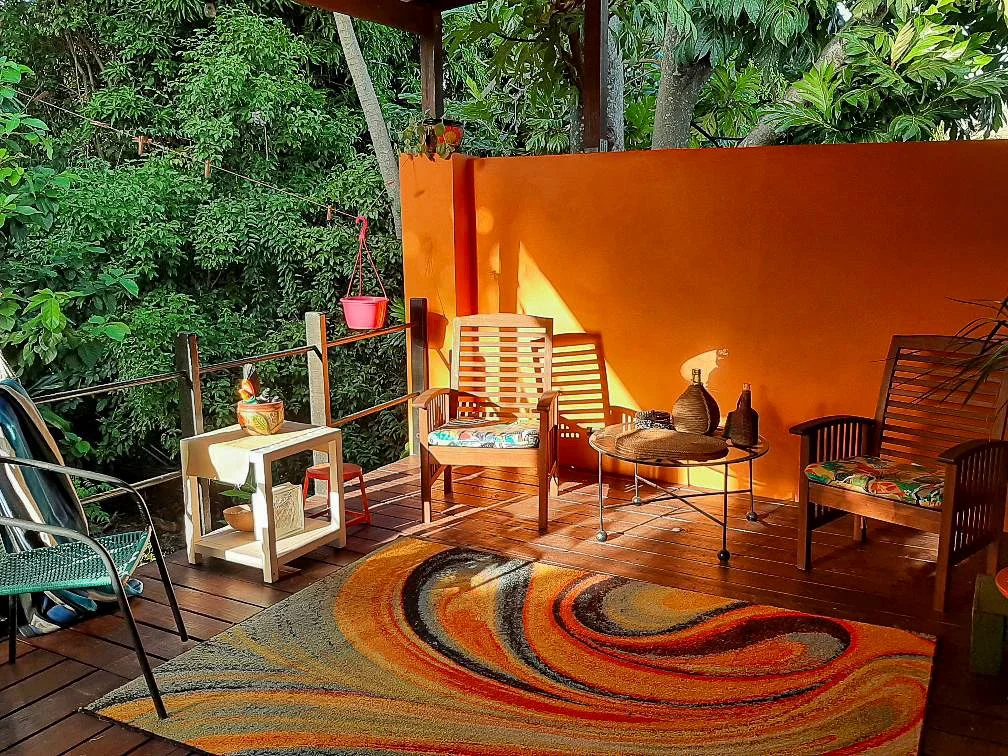 The 276 sqft solid wood deck is shaded and tucked away, making it a great spot to enjoy the quietude and watch the shifting sun rays of the afternoon’s golden hour. The yard, a small tropical forest of sorts, is sheltered by mature avocado, banana, breadfruit, and mango trees and has plenty of space to build a plunge pool or jacuzzi.