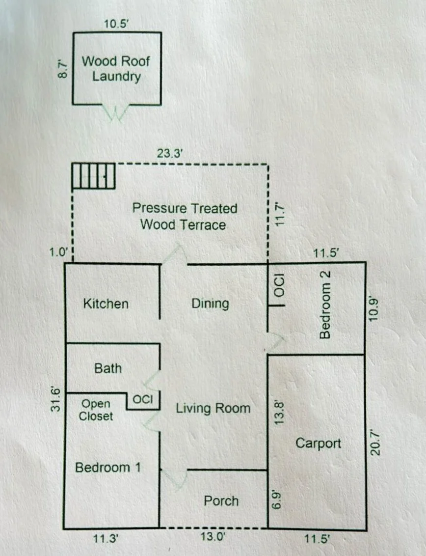 Just off to the side of the house are wonderfully designed wooden stairs for easy access to the home’s rooftop, where the ocean is visible between the tree tops. The rooftop is fully treated and ready for a fabulous rooftop pergola, gardens, or a second story, which would double your real estate investment.