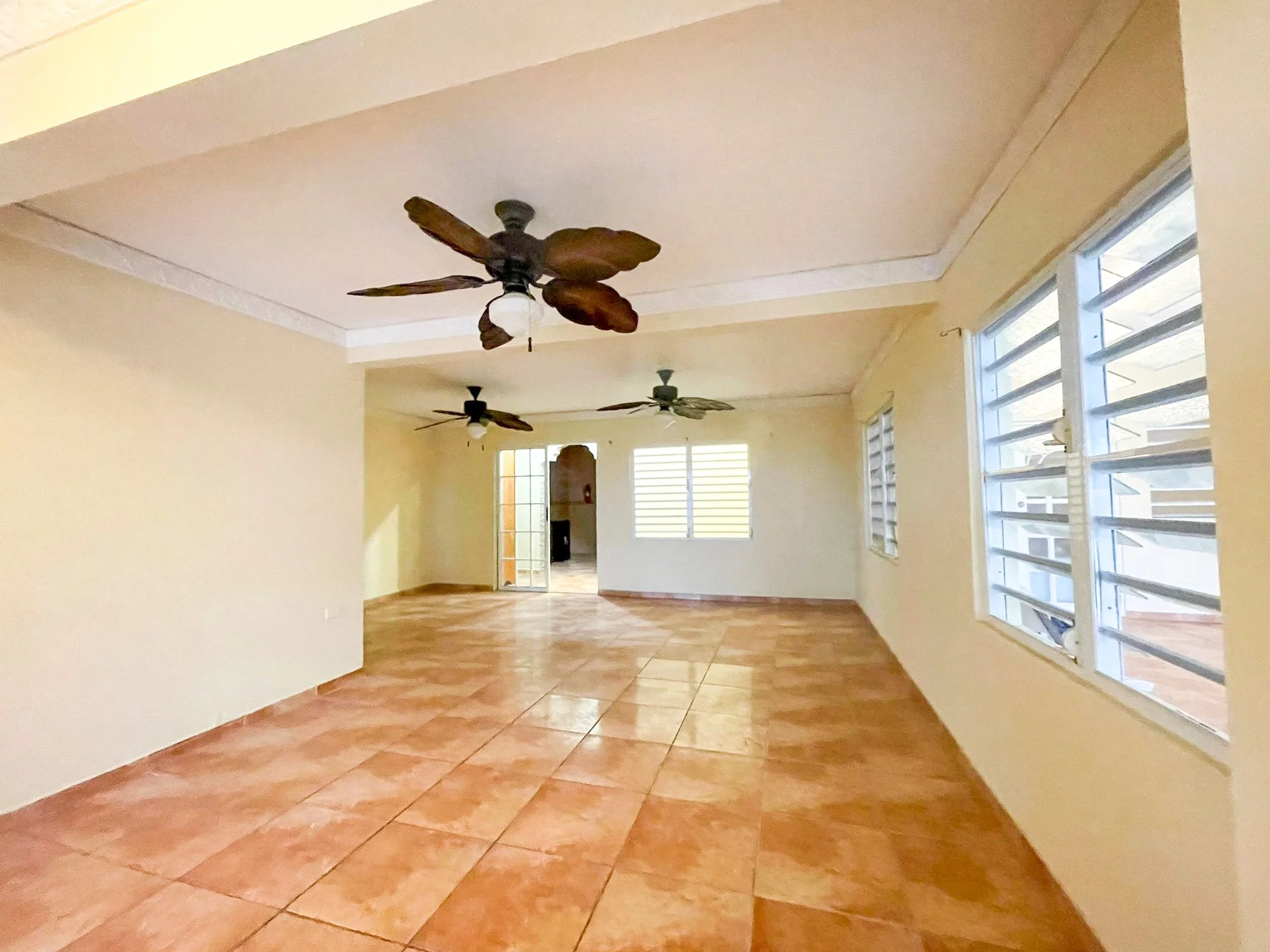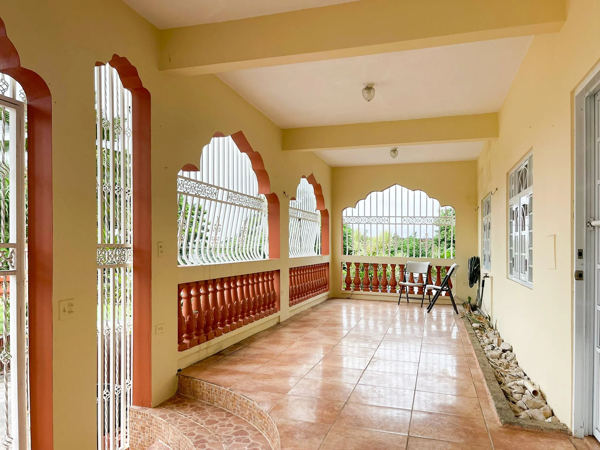 This move in ready home located in the Florida neighborhood in Vieques is full of personality. Easy to maintain and conveniently located across from the farmers market, between the two hardware stores and local restaurants — all within eight minutes of both Isabel Segunda, Esperanza and the airport. Behind the private gate is a sizable anterior garden and driveway. The home’s ornamental facade is flanked by tall columns, multi-foil arches, and decorative rejas which give way to a comfortable porch and marquesina spacious enough for outdoor lounging and two full sized vehicles.