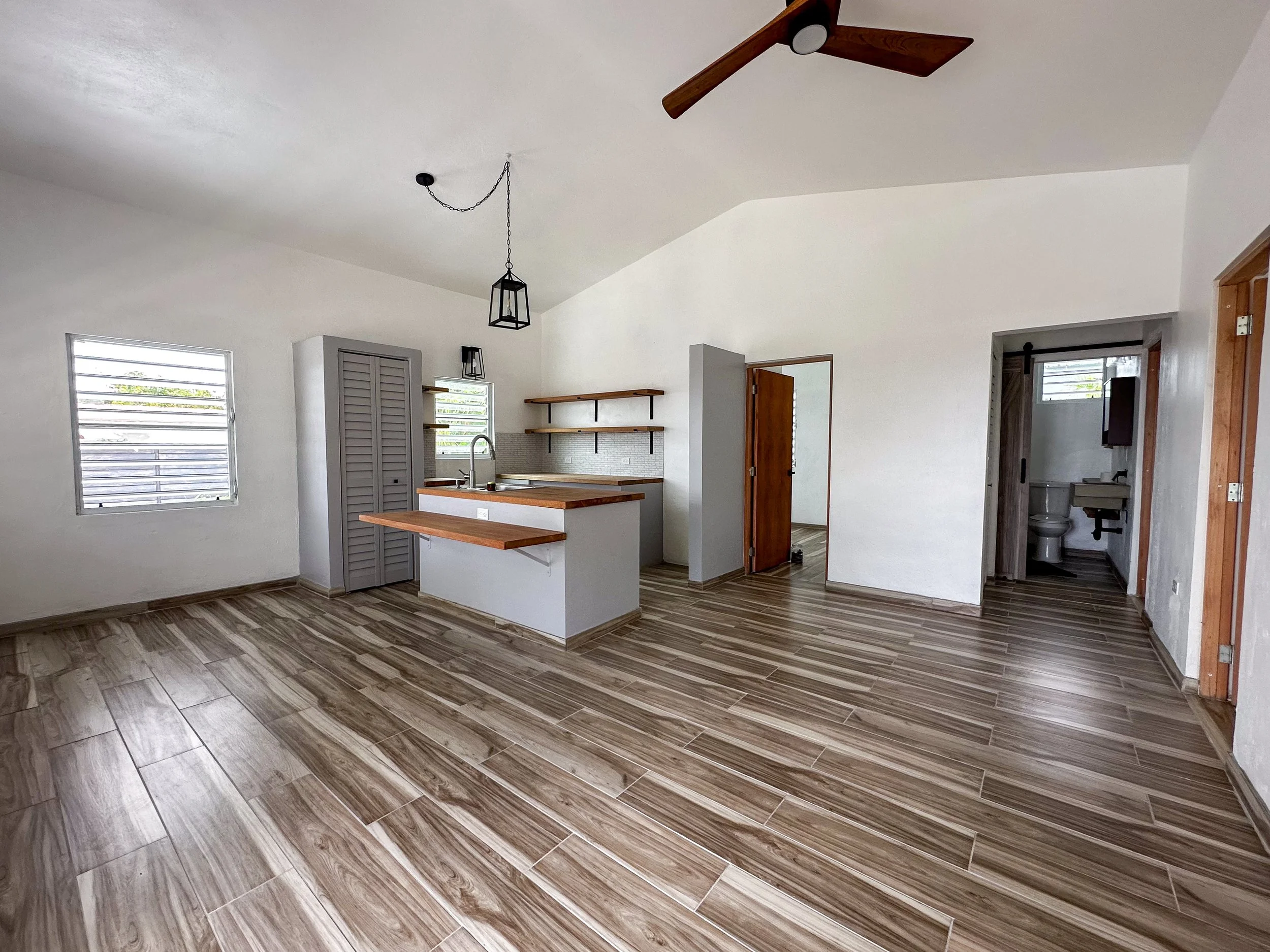 This charming Casita has been newly renovated with modern farmhouse touches. From decorative shutters, wooden accents, and sliding barn doors the sleek 3 bedroom, 1 bath apartment is move in ready. The vaulted ceilings give the living/kitchen space a grand and welcoming feeling. Equipped with a laundry room and lots of closet space, the property was built for comfortable living. The south facing balcony and surrounding lot, have views of the Caribbean and plenty of space for a beautiful landscaping and gardening. Conveniently located in the quiet outskirts of Esperanza but still within close proximity to the Malecon and Restaurants.